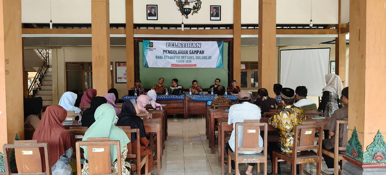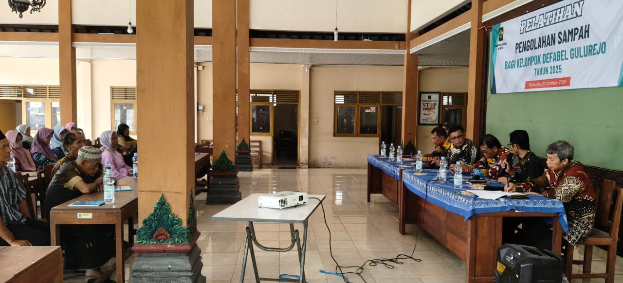Gulurejo, 24 Oktober 2025. Hari Kamis Tanggal 23 Oktober 2025 bertempat di Kalurahan Gulurejo telah dilaksanakan kegiatan Pelatihan Pengelolaan Sampah Bagi Kelompok Defabel. Pelatihan pengelolaan sampah ini bertujuan untuk meningkatkan kesadaran, pengetahuan, dan keterampilan masyarakat dalam mengolah sampah secara benar dan berkelanjutan, termasuk pemilahan, pengurangan, daur ulang, dan pemanfaatan kembali sampah.